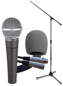 The Shure SM58 is a unidirectional (cardioid) dynamic vocal microphone designed for professional vocal use in sound reinforcement and studio recording. A highly effective, built-in, spherical filter minimizes wind and breath "pop" noise. A cardioid pickup pattern isolates the main sound source while minimizing unwanted background noise. The SM58 has a tailored vocal response for a sound which is a world standard. Rugged construction, a proven shock mount system, and a steel mesh grille ensure that even with rough handling, the SM58 will perform consistently. Outdoors or indoors, singing or speech -- the SM58 is the overwhelming choice of professionals worldwide.